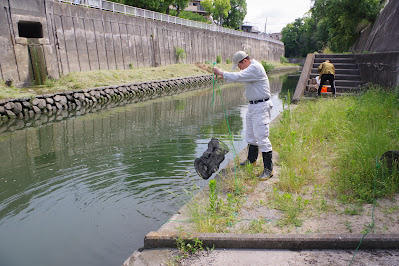 毎年季節ごとに行っている「福田川の生物多様性調査」。今回は、週末の悪天候に翻弄され、5月17日以来3週にわたっての調査となってしまいました。しかし、ようやく土日の天候が安定し、残りのコープこうべ福田店前と瑞穂公園前のもんどり引上げ調査ができました。コープこうべ福田店前では特大サイズも含め3匹のカワアナゴが掛かりました。放流され定着している鯉の食害をのがれて、環境省レッドデータブック記載の魚が定着しています。瑞穂公園前では、魚やレギュラーメンバーのテナガエビが掛からず寂しい釣果に終わりました。今後、水質や植生の調査結果と併せて報告書にまとめて公開します。